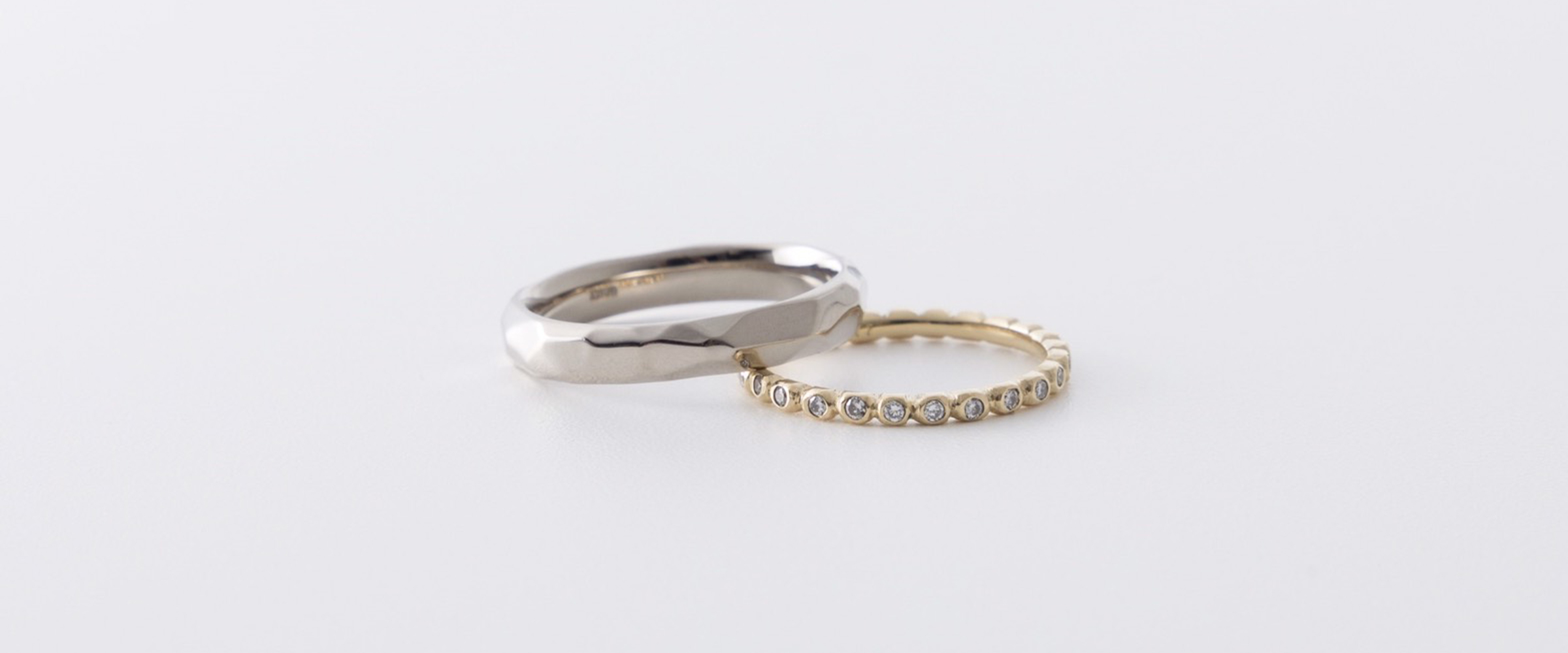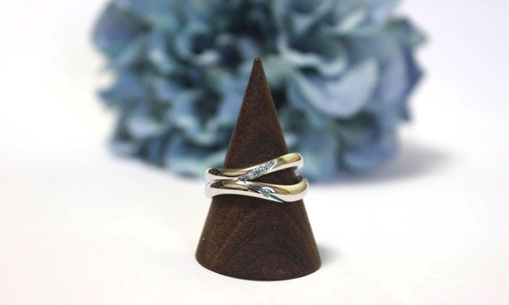 リングを蝶の様に縦に合わせるとハートのシルエットが浮かぶデザイン。