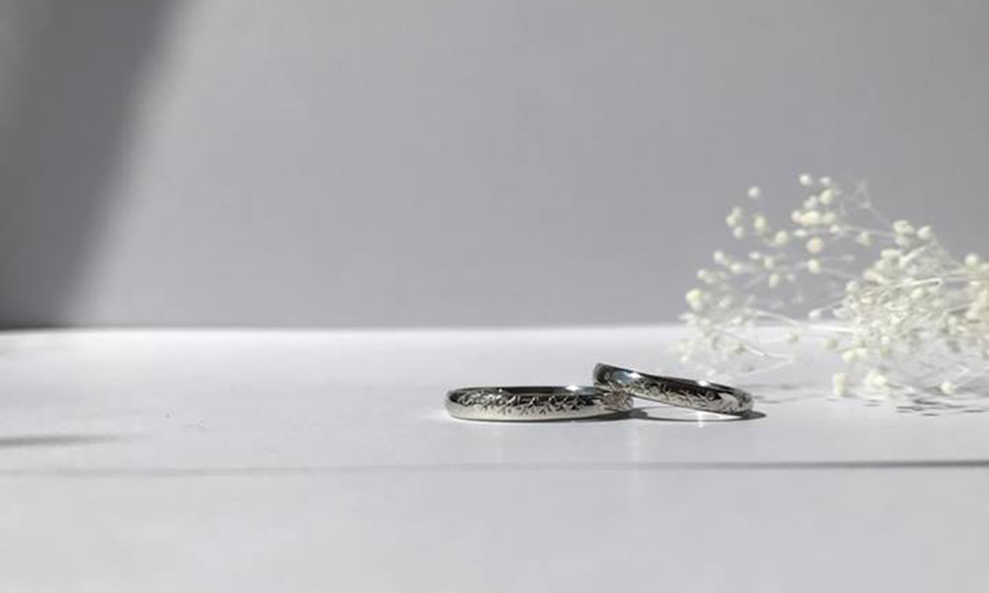 2本の指輪が折り重なると浮かび上がる一本の大きな木。