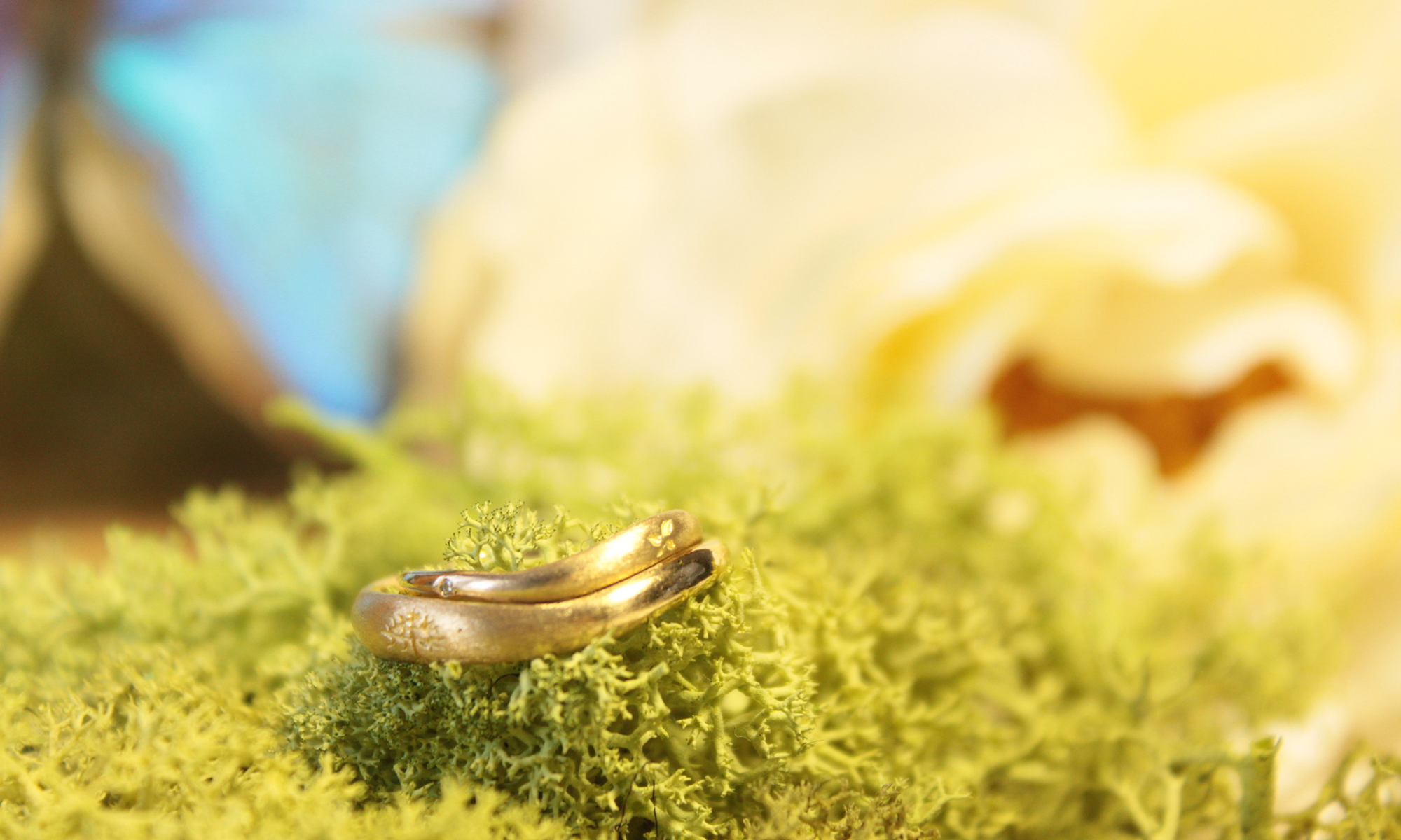 ゆっくりと根を張り、枝を伸ばし豊かな葉をつける木の様にお二人の絆がこれからも強くなっていきますようにと願いを込めてできたデザイン。